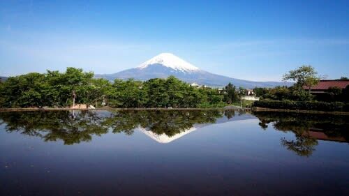 貰い物なんですが、あまりにキレイなので投稿します。これはどこ?池がある観光地だと思ったんです。そしたら、手前は田んぼで地元で撮ったそうです。見事な逆さ富士てす。
