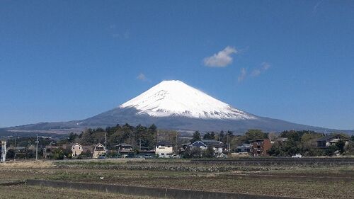 今朝の富士山です。 4月も半ばなのに、麓近くまで積雪があります。