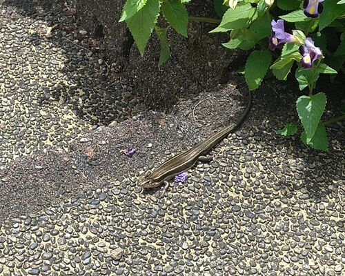昨日、今日でトカゲを良く見かけるようになりました。ニホンカナヘビと思われます。 家の庭にもいて、チョロチョロとにげまわります。そして、ジョギングすると歩道に何匹もいます。 こんなに見かける年は初めてです。